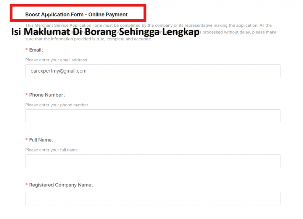 5. Anda akan dibawa ke halaman Borang Permohonan BOOST. Lengkapkan semua butiran yang diperlukan dan upload dokumen yang diperlukan. Jika anda pemohon geran digital, butiran dan dokumen ini sudah diisi siap untuk anda. Anda hanya perlu tambah butiran Nama Bank dan No Akaun Bank sahaja. Rujuk gambar di bawah.